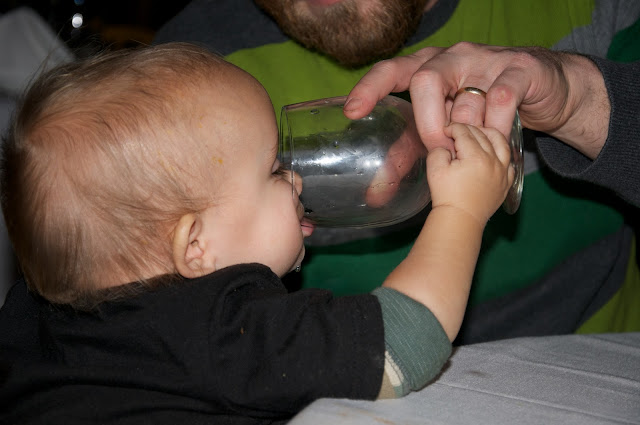 On Christmas Eve eve (aka the 23rd), Ben's stepdad treated us to a fancy dinner out. Bob loves eating in restaurants because I always forget to bring him a cup, and therefore he gets to drink from a glass...